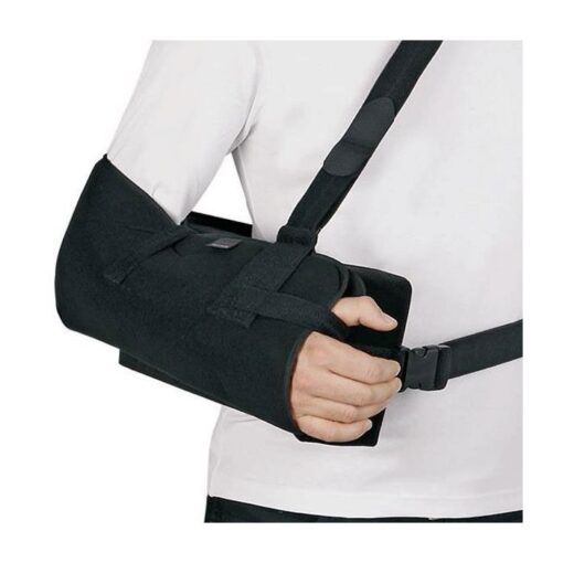Ottobock Omo Immobil Sling Abduction. Is a shoulder brace that comfortably immobilizes and relieves the shoulder joint at 15° of abduction. It is used in the case of acute and chronic shoulder joint complaints and can relieve pain.